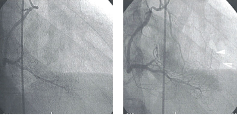 Remarkable coronary collaterals presented from right coronary artery to the proximal segment of LAD, which had 90% stenosis before EHHT treatment for 36 hours.