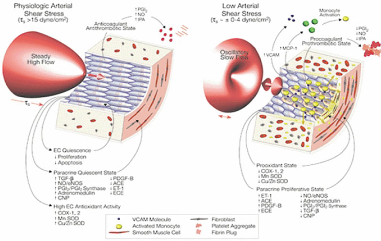 Hemodynamic studies have identified shear stress as an important determinant of endothelium function.